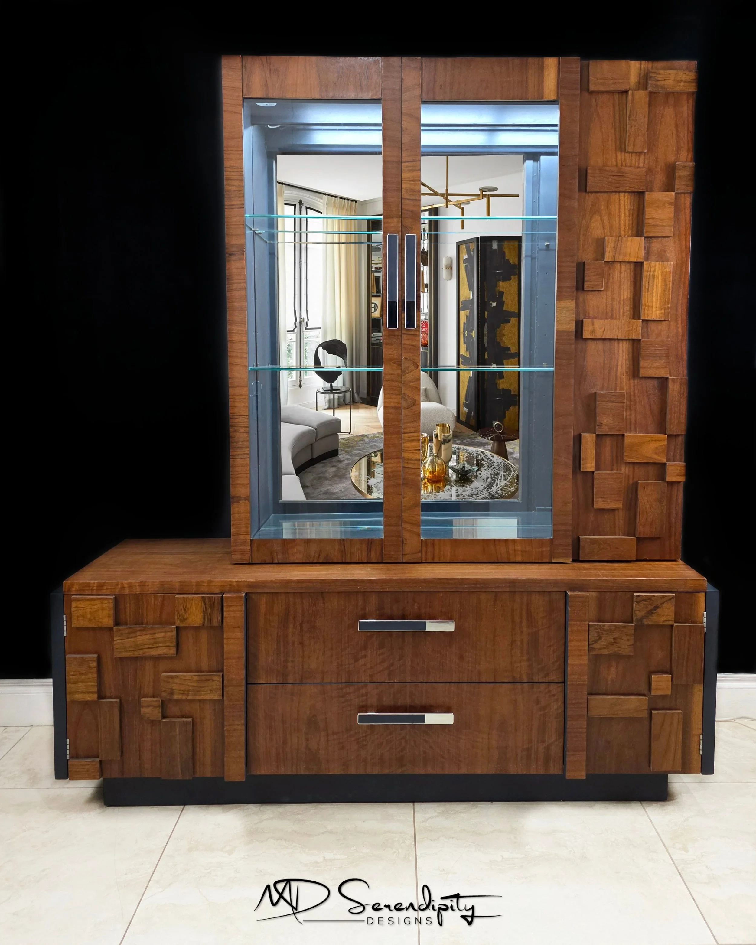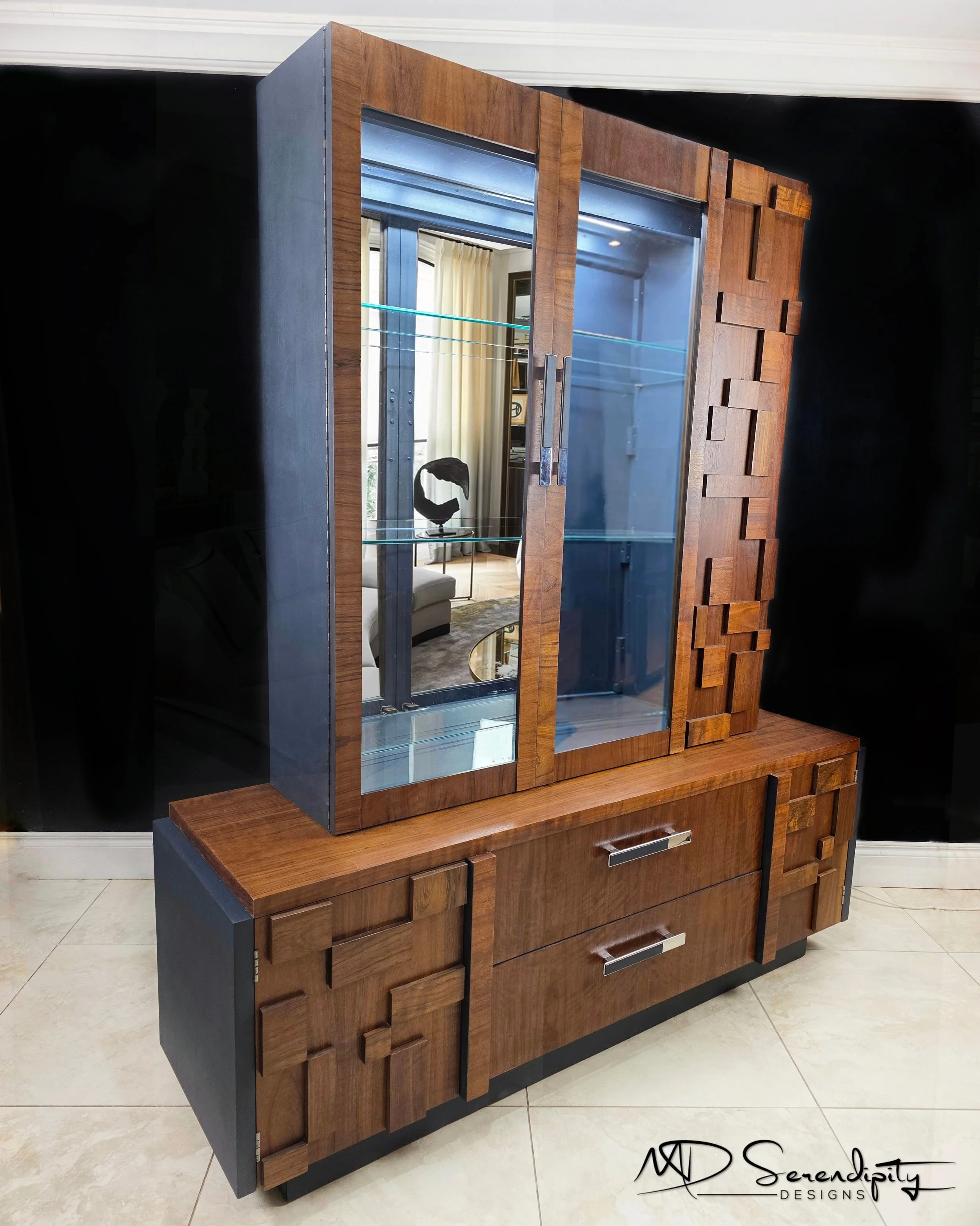 Breathing New Life Into a 1970’s Lane Staccato Brutalist Walnut Credenza & Hutch